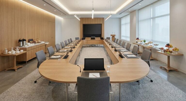چیدمان اتاق کنفرانس تنها یک انتخاب زیبایی‌شناسانه نیست؛ بلکه تعیین‌کننده الگوی ارتباطی افراد در جلسه است.