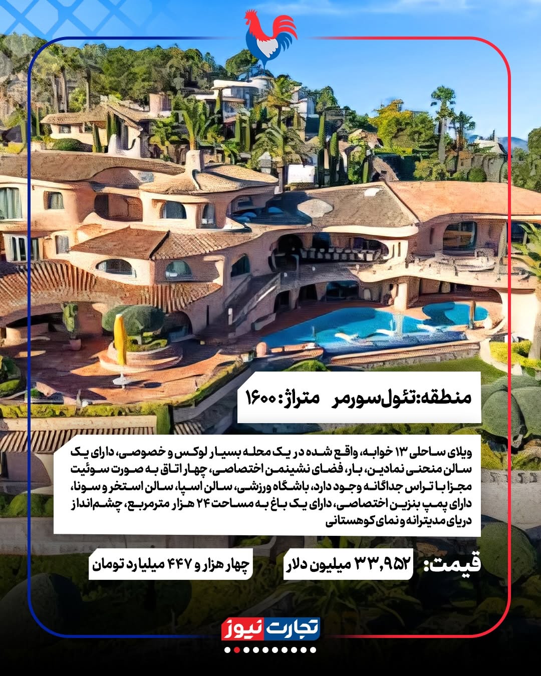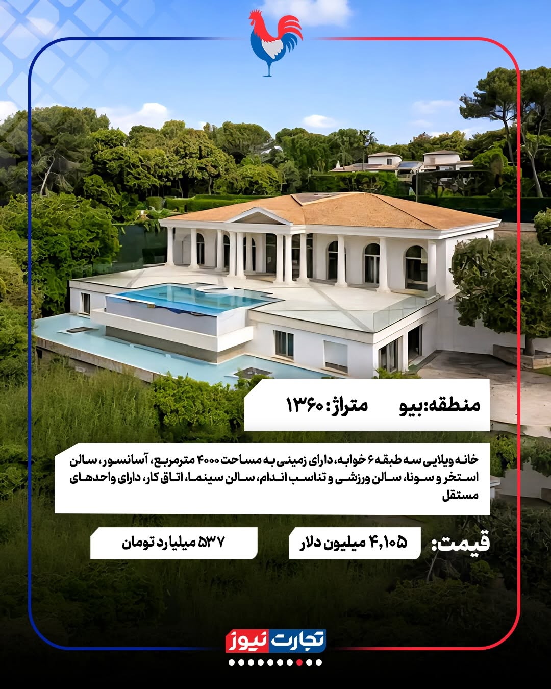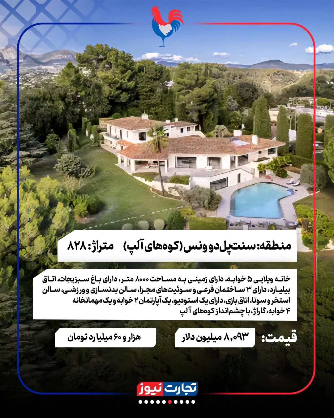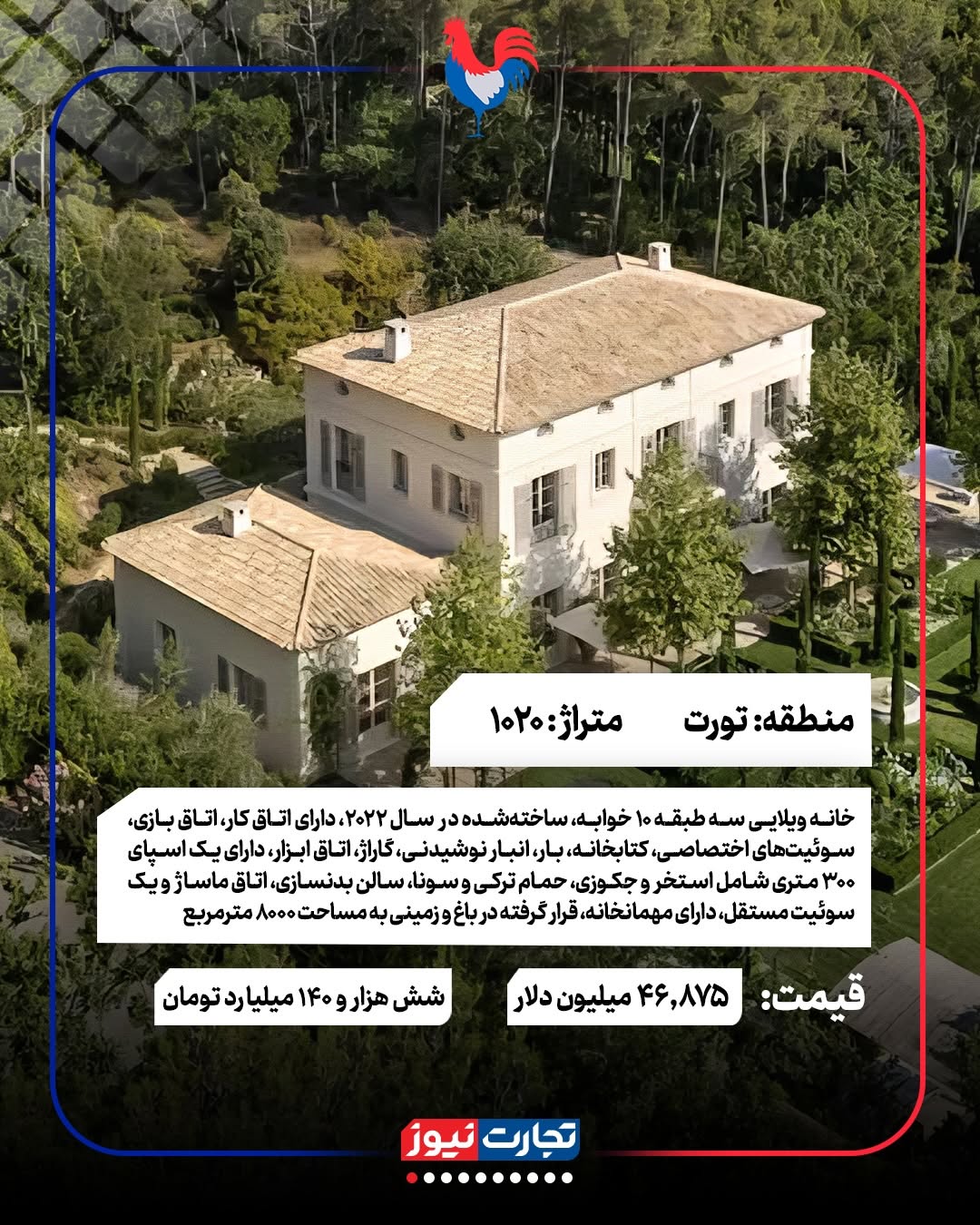 بررسی بازار املاک لوکس فرانسه نشان میدهد که بسیاری از این خانهها با امکانات جذابی به فروش گذاشته شده است؛ نکته قابل تامل قیمت آنهاست که در مقایسه با املاک لوکس تهران ارزانتر هستند. چشمانداز، وجود باغات و فضای سبز و امکانات رفاهی این املاک در مقایسه با ویلاهای لاکچری تهران شبیه یک شوخی بهنظر میرسد.