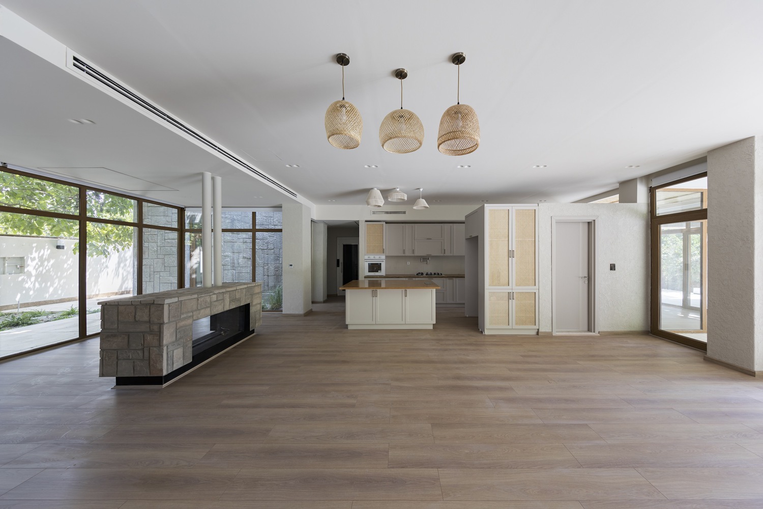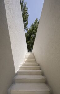گردو با ارزش ترین عنصر سایت این پروژه بوده است. بنابراین، توده ساختمان را بین این دو درخت قرار داده اند. شفافیت ساختمان در کنار درختان افزایش می یابد تا جایی که فضا به حالت «هم درون و هم بیرون» می رسد. حجم بنا در امتداد محور درختان گردو کشیده شده است و هواپیماها مانند بازوهایی امتداد یافته اند تا درخت را در آغوش بگیرند. این بازوها فضای ورودی را در کنار درخت گردوی جنوبی تشکیل می دهند.