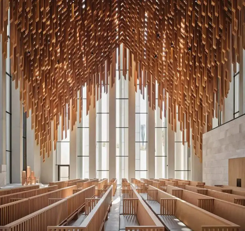 با وجود شباهت حجمی، هر بنا هویت مستقل خود را دارد: مسجد با بازی نور و سایه و نشانههای هندسی اسلامی شکل گرفته؛ کلیسا با ارتفاع عمودی و نور کنترلشدهی طبیعی حالوهوای تعالی را زنده میکند؛ و کنیسه در فضایی آرام و صمیمیتر طراحی شده که نور جانبی آن حس مکاشفه و سکون را تقویت میکند. این تفاوتها تعمدیاند؛ معماران میخواستند هر دین در فضای خود احساس آشنایی و تعلق داشته باشد، اما در چارچوب زبانی مشترک حرکت کند.