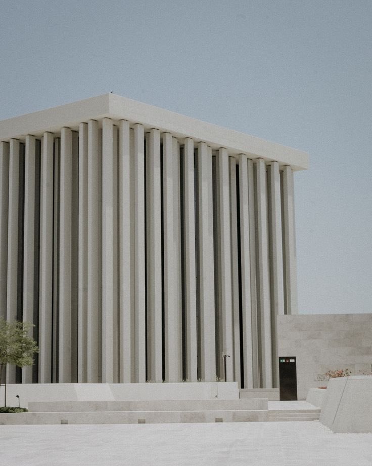 مصالح نیز نقش مهمی دارند. از سنگهای روشن گرفته تا سطوح بتن بافتدار، همهچیز با اقلیم ابوظبی و روح پروژه هماهنگ است: بیپیرایه، آرام و ماندگار. فرمهای خالص و سادهی مکعبی به بناها نوعی صلابت و قطعیت دادهاند؛ گویی سه سنگبنای روشنِ معنویت معاصر را پیش چشم ما میگذارند.