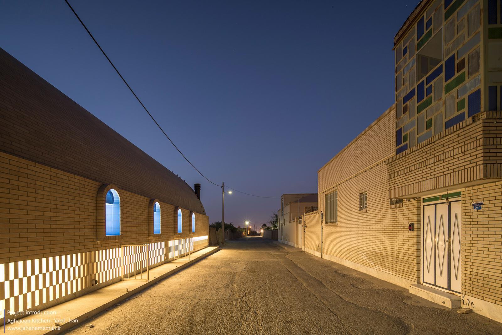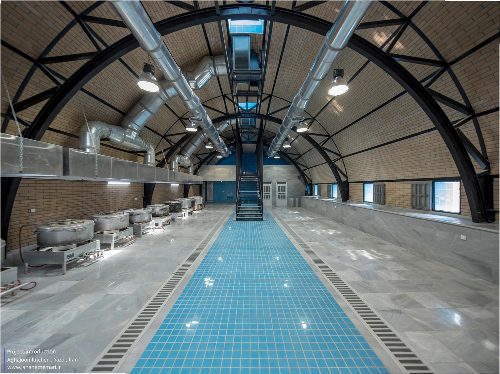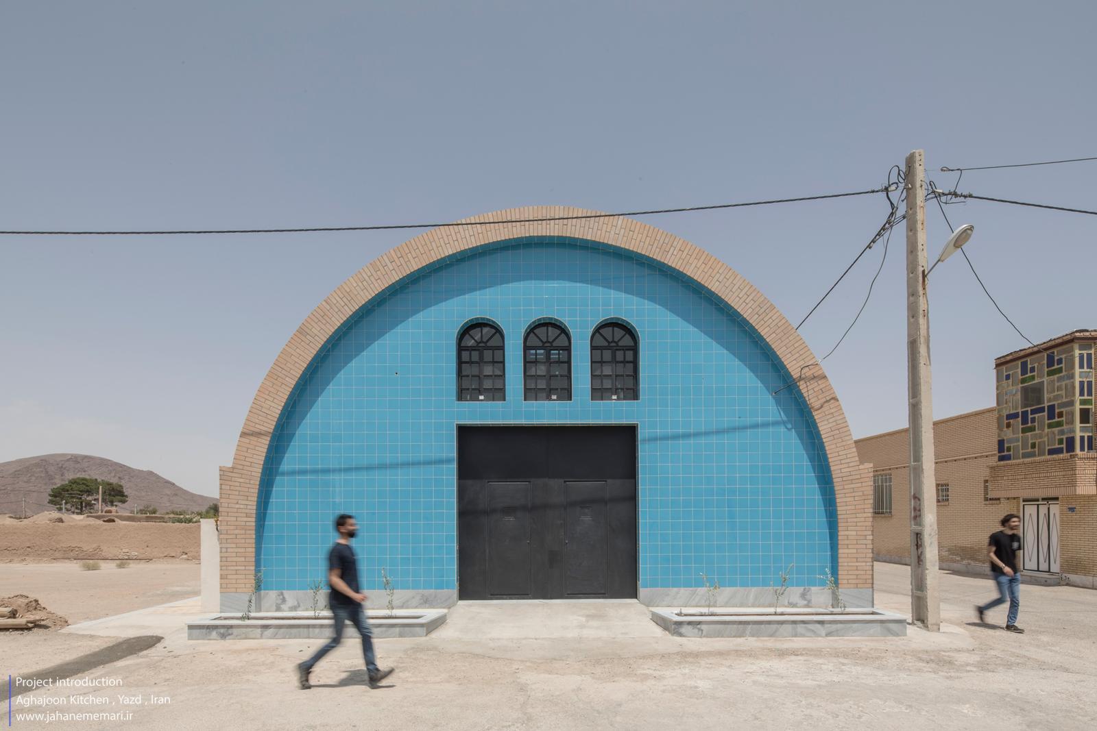 پروژه «آشپزخانه آقاجون» در روستای خلیلآباد یزد، با هدف بازآفرینی قلب اجتماعی روستا و جایگزینی یک محوطه پختوپز غیربهداشتی طراحی شد. این بنا با الهام از معماری بومی، از طاق بزرگ آجری و کاشیهای فیروزهای استفاده کرده و توانسته است ضمن بهبود بهداشت، رتبه سوم مشترک سیزدهمین جایزه معماری و معماری داخلی ایران را کسب کند