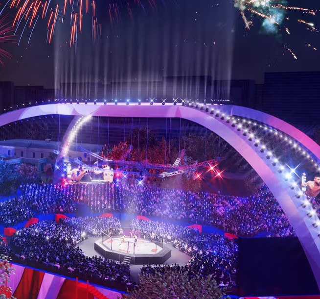 طرحی که معماری کاخ سفید را به چالش میکشد بر اساس طرحهای منتشر شده توسط دانا وایت، رئیس سازمان یوافسی، این آرنای ورزشی با ظرفیت ۵۰۰۰ نفر قرار است در محوطه جنوبی کاخ سفید ساخته شود. از ویژگیهای شگفتانگیز این پروژه، طراحی یک طاق عظیم با نورپردازی تزئینی است که هم کاخ سفید و هم بنای یادبود واشنگتن را در بر خواهد گرفت.