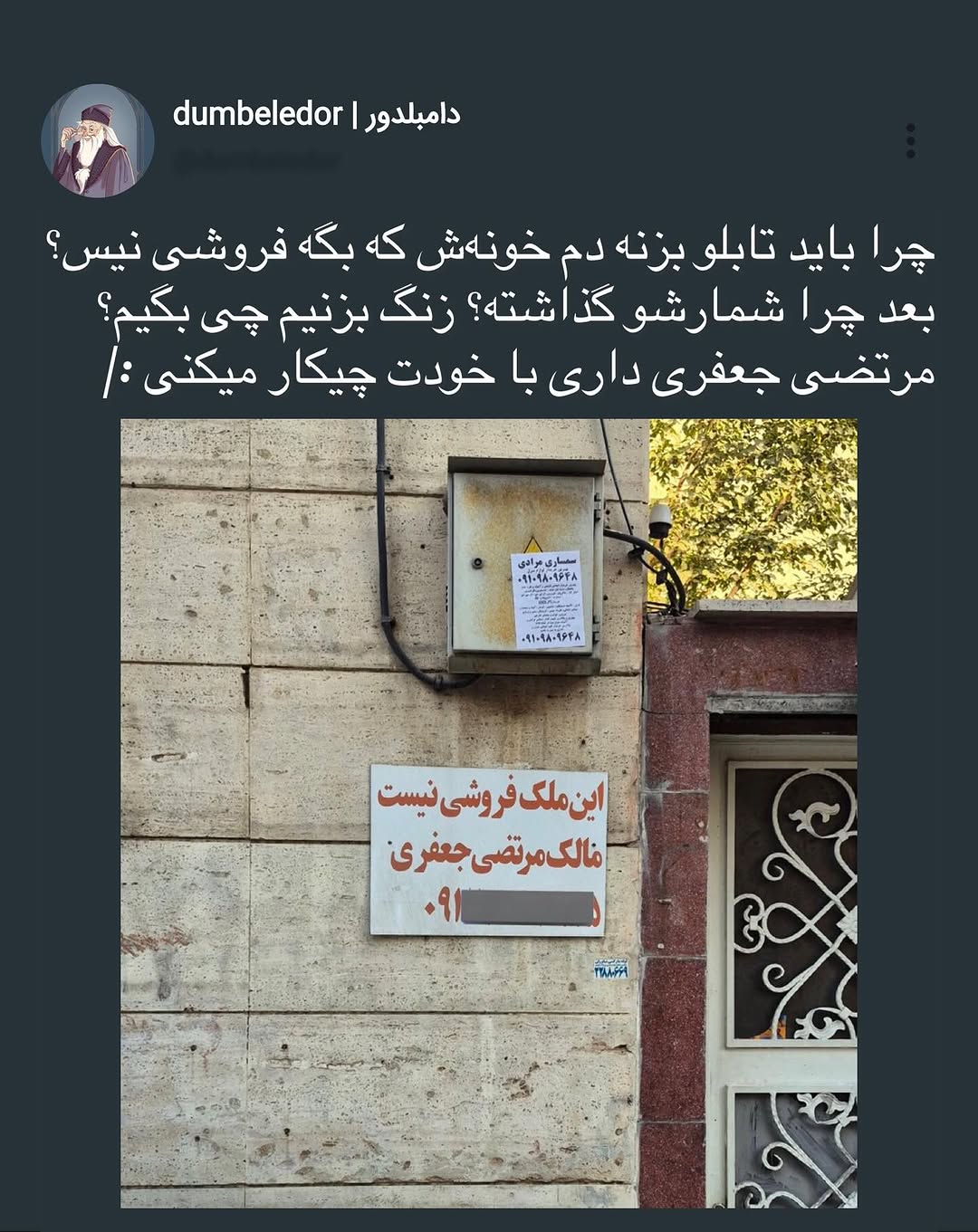 در یکی از محلههای قدیمی تهران، روی در دیوار یک خانه، برگهای نصب شده که توجه رهگذران را جلب میکند. بر خلاف معمول که روی دیوار خانهها نوشته میشود «فروشی است»، اینبار صاحبخانه تأکید کرده: «این خانه فروشی نیست».