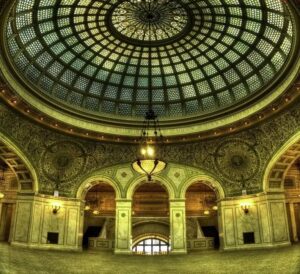 در مرکز فرهنگی شیکاگو، تالاری باشکوه قرار دارد که احتمالاً بزرگترین گنبد شیشهرنگی تیفانی در جهان را در خود جای داده است. این گنبد که در سال ۱۸۹۷ ساخته شد، اثر جیکوب آدولفوس هولتسر، هنرمند سوئیسیتبار است.