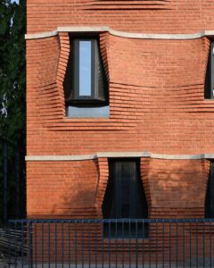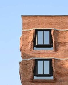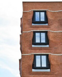 در این بنا، پنجرههای شیشهای بزرگ به صورت عقبنشینی شده در میان بازشوهای حاصل از آجرچینی و سنگهای کنسولشده قرار گرفتهاند تا علاوه بر زیبایی، از تابش مستقیم آفتاب در امان باشند.