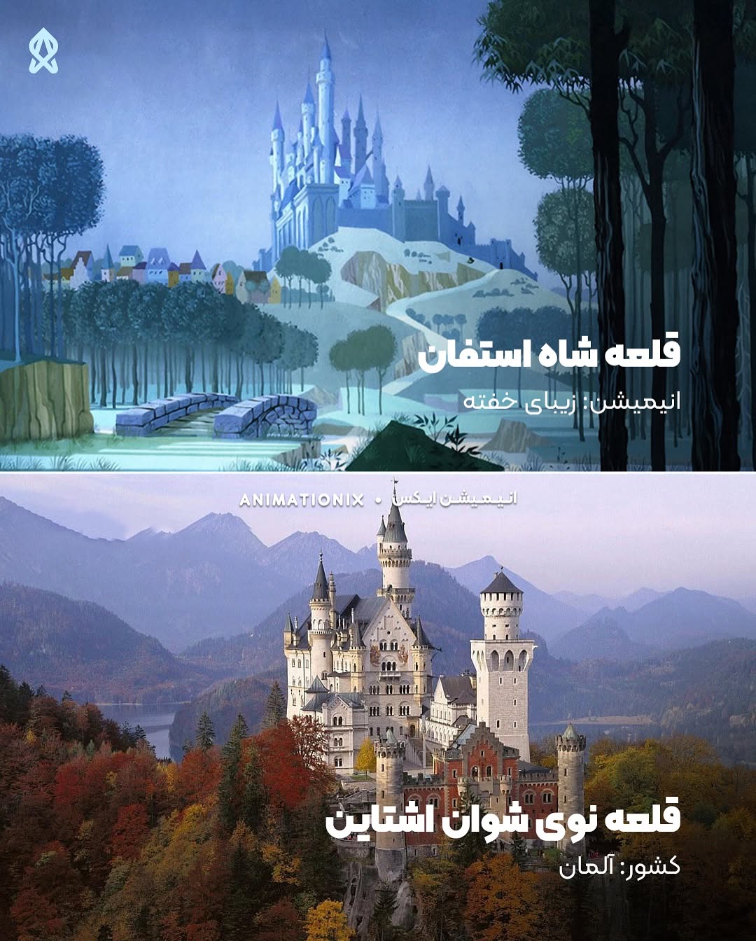 دنیای دیزنی هرچند که از خیال ساخته شده است اما خیلی از آن ها از مکان های واقعی الهام گرفته شدهاند، مخصوصاً قلعهها و بناهایی که یادآور قصههای کلاسیک و افسانهای هستند.