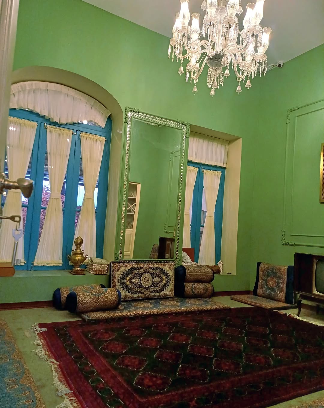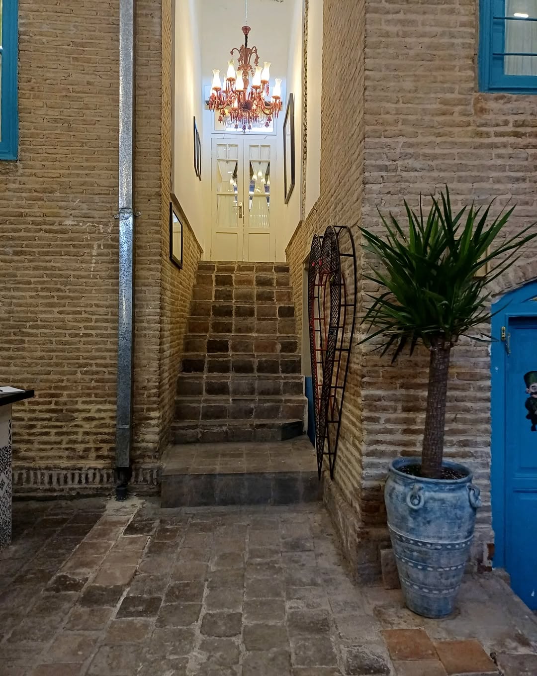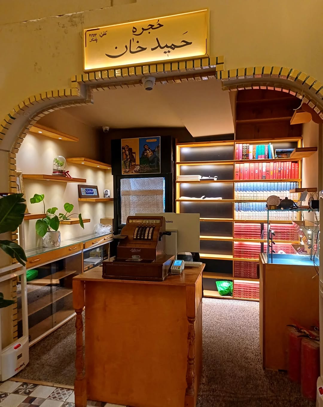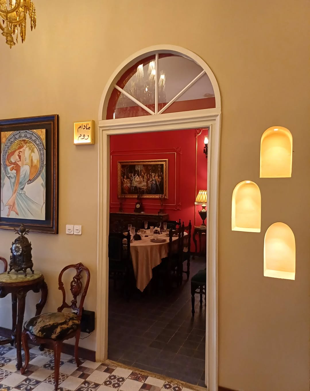 فضای داخلی این عمارت با درهای قوسیشکل، طاقچههای هلالی نورپردازیشده، مبلمان کلاسیک و کاشیهای طرحدار، حالوهوایی کاملاً اصیل و تاریخی دارد؛ ترکیبی از زیبایی قدیمی و جذابیتی که هنوز هم مسحورکننده است.