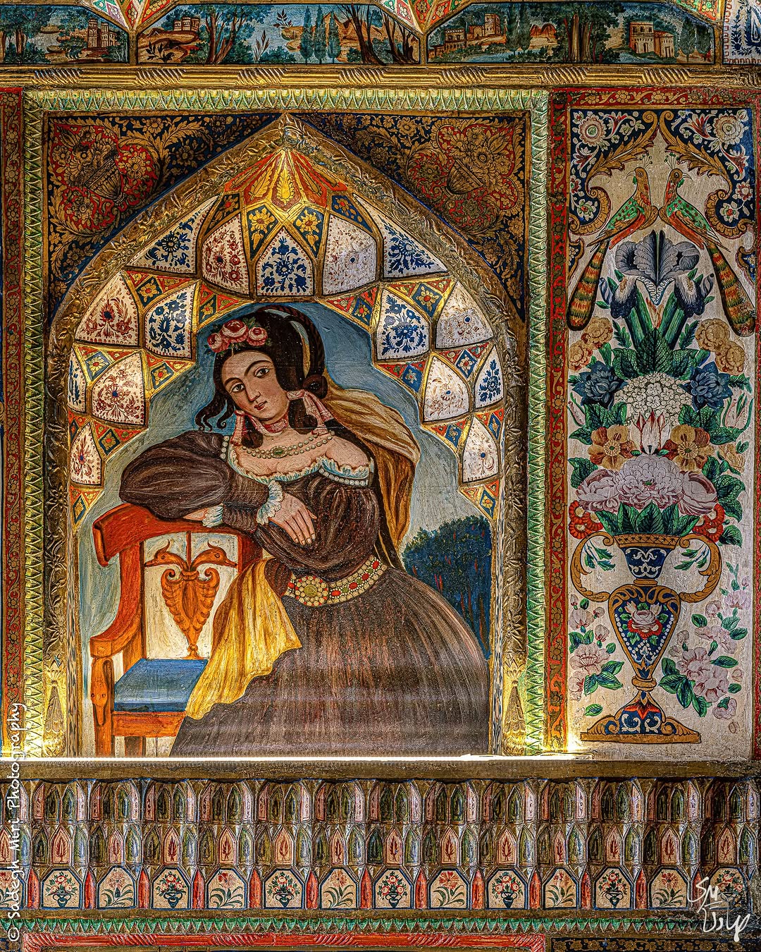 در خانهٔ حریری، دیوارها سخن میگویند. هر نقش، روایتی از رؤیای ایرانی است؛ از عشق و موسیقی، از طبیعت و خیال. اینجا رنگها جاودانه شدهاند، و زمان در میان گلها و نگاهها مکث کرده است.