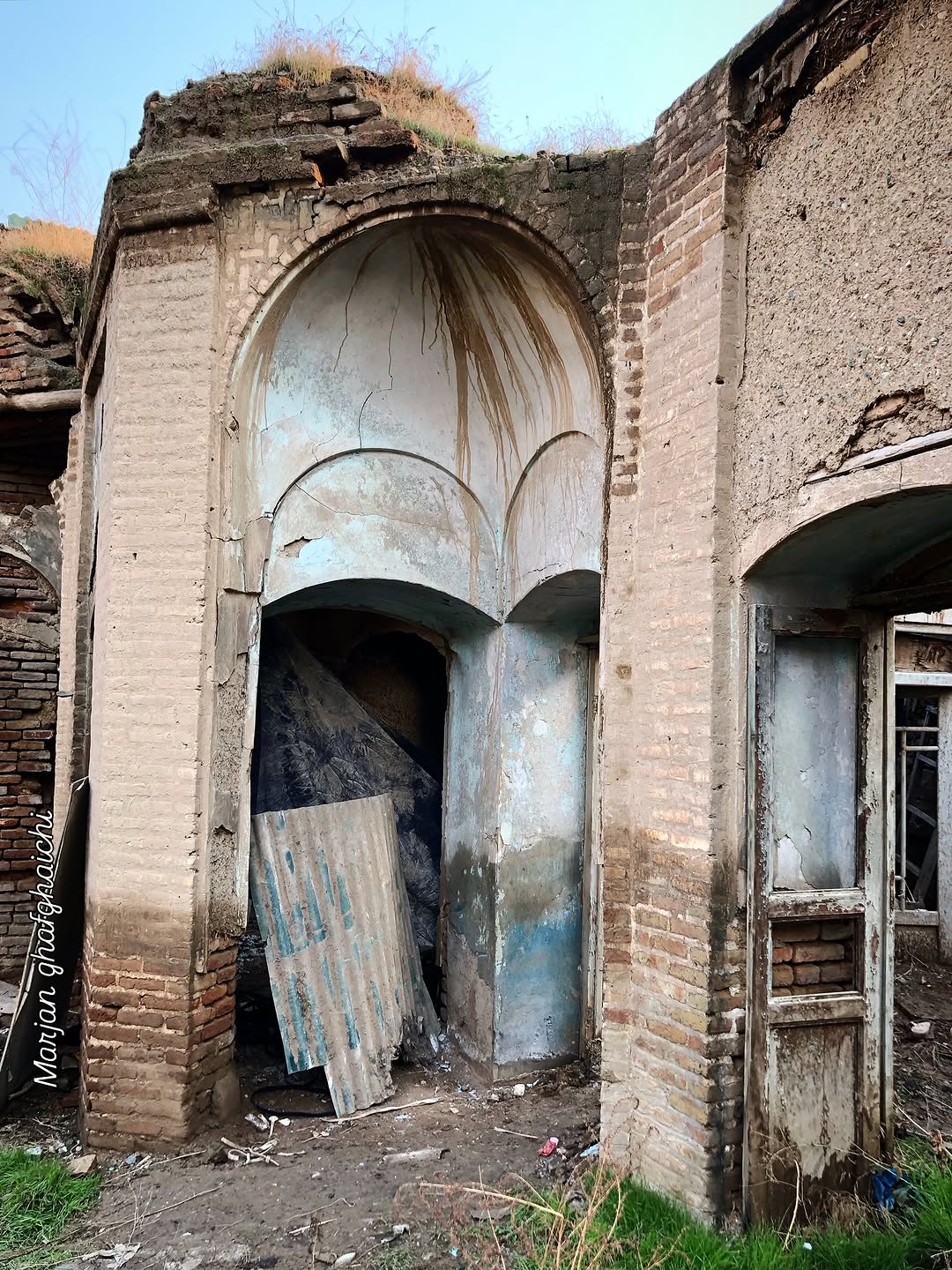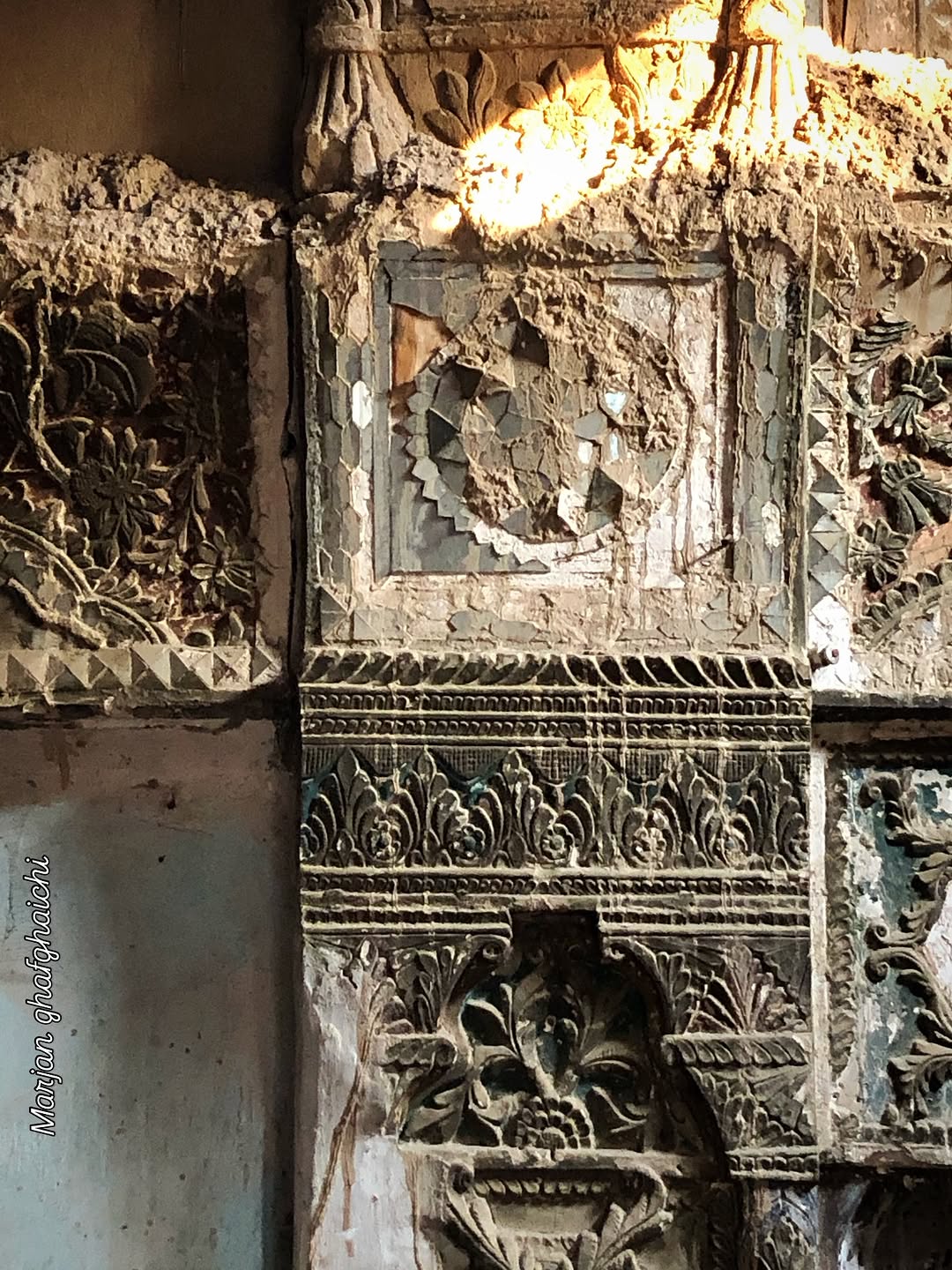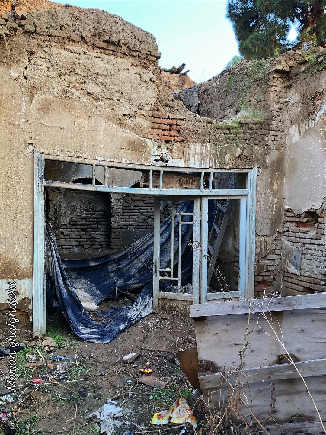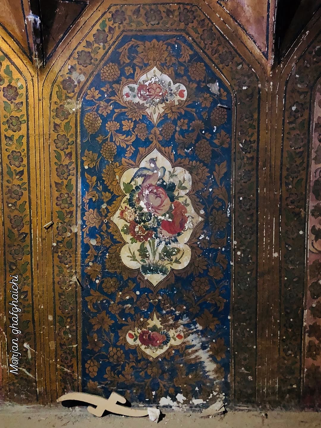 اما آنچه دیدیم، خرابههایی بود که به محل خواب معتادان محله تبدیل شده بود.هر گوشه از این خانه تخریب شده بود، شاید به امید یافتن گنجی پنهان؛ و در این میان، نقشهای بینظیر و اصیل دیوارها یکی پس از دیگری از بین رفته بودند.اکنون سالهاست که ورودی خانه مسدود شده و فقط سکوتی سنگین از آن باقی مانده است.
