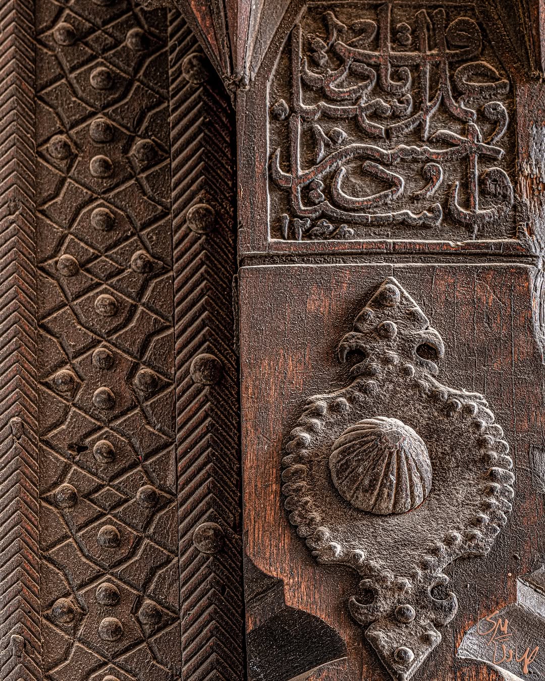 درِ چوبی با نقوش ظریف و دستساز، گویی ورودی به دنیایی از دانش، ایمان و زیبایی است. دیوارها با گچبریها و مقرنسهای چشمنواز تزئین شدهاند و نور، از خلال قوسها و حفرهها، بر بافت کهنهی فضا میتابد و حس آرامش و احترام را زنده میکند.