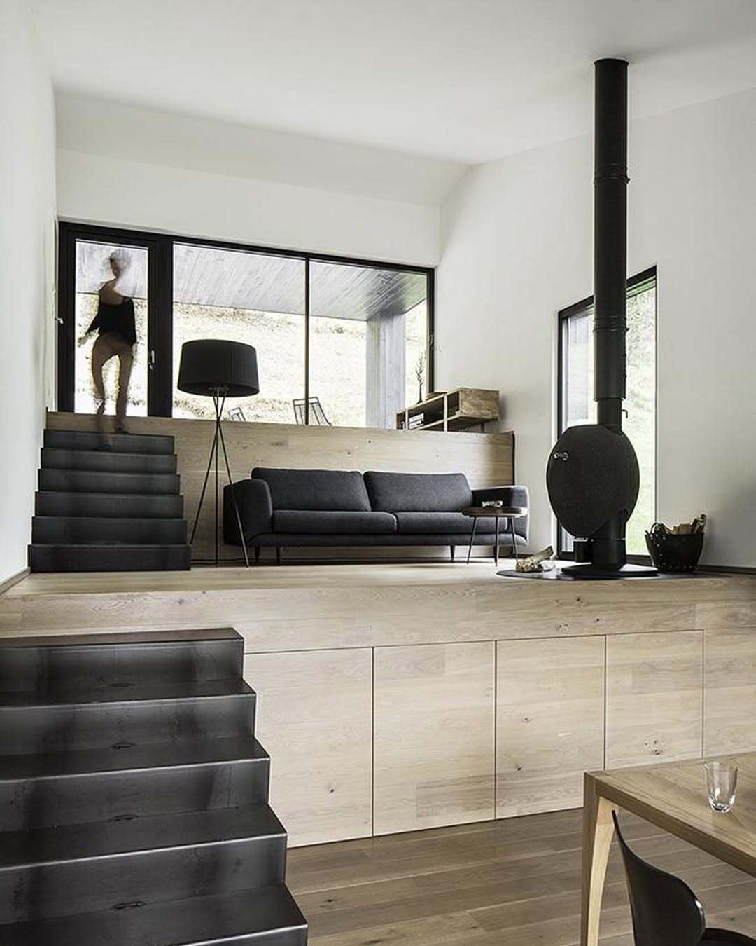 این اقامتگاه با ساختاری متشکل از یک بدنه اصلی فشرده و یک ساختمان جانبی پیشآهنگ شکل گرفته است. این آرایش هوشمندانه، فضاهایی با توالیهای خاص (مانند ورودی، آتریوم و فضای جلوی سرپوشیده) را ایجاد کرده که کیفیتهای بصری و عملکردی فراتر از یک چیدمان سنتی را به وجود میآورند. این پروژه نمایانگر سبک معماری مدرن و معاصر در منطقهای با پیشینه معماری آلپ است.