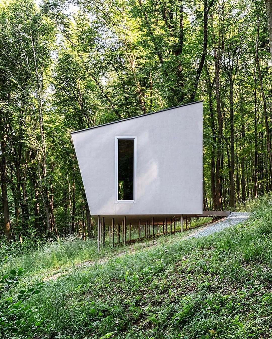 کابینی چوبی در جنگل آلپوکالیا در نزدیکی شهر کُشِگ مجارستان ساخته شده که بهطور کامل روی پایههای بلند قرار گرفته است تا کمترین مداخله را در محیطزیست اطراف داشته باشد. این سازه که «کابین ماس» نام دارد، از یک حجم زاویهدار تشکیل شده و ۴۰ مترمربع مساحت دارد.