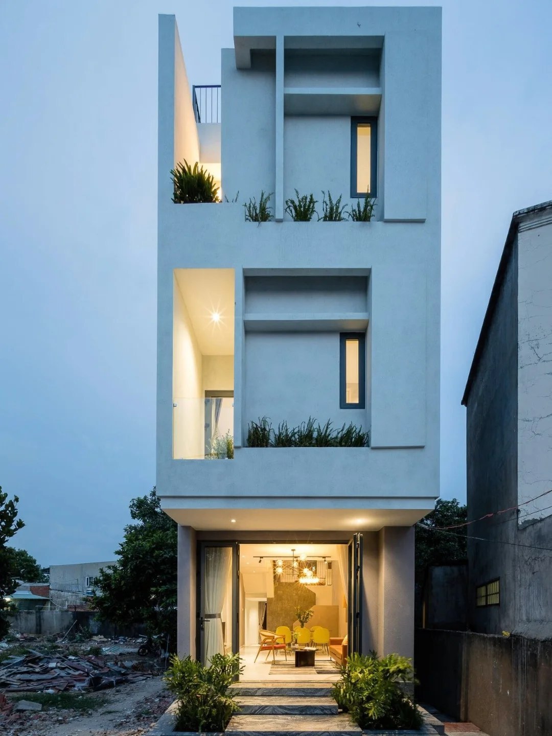 پروژه مسکونی «خانه هوین» که در سال ۲۰۲۰ تکمیل شد، نمونهای از حل هوشمندانه چالشهای تحمیلشده توسط یک زمین بسیار محدود ۵۵ متر مربعی است. مهمتر از آن، این خانه موفق شده است با جهتگیری نامطلوب خود به سمت غرب که در معرض تابش شدید خورشید در بعدازظهر قرار دارد، مقابله کند.