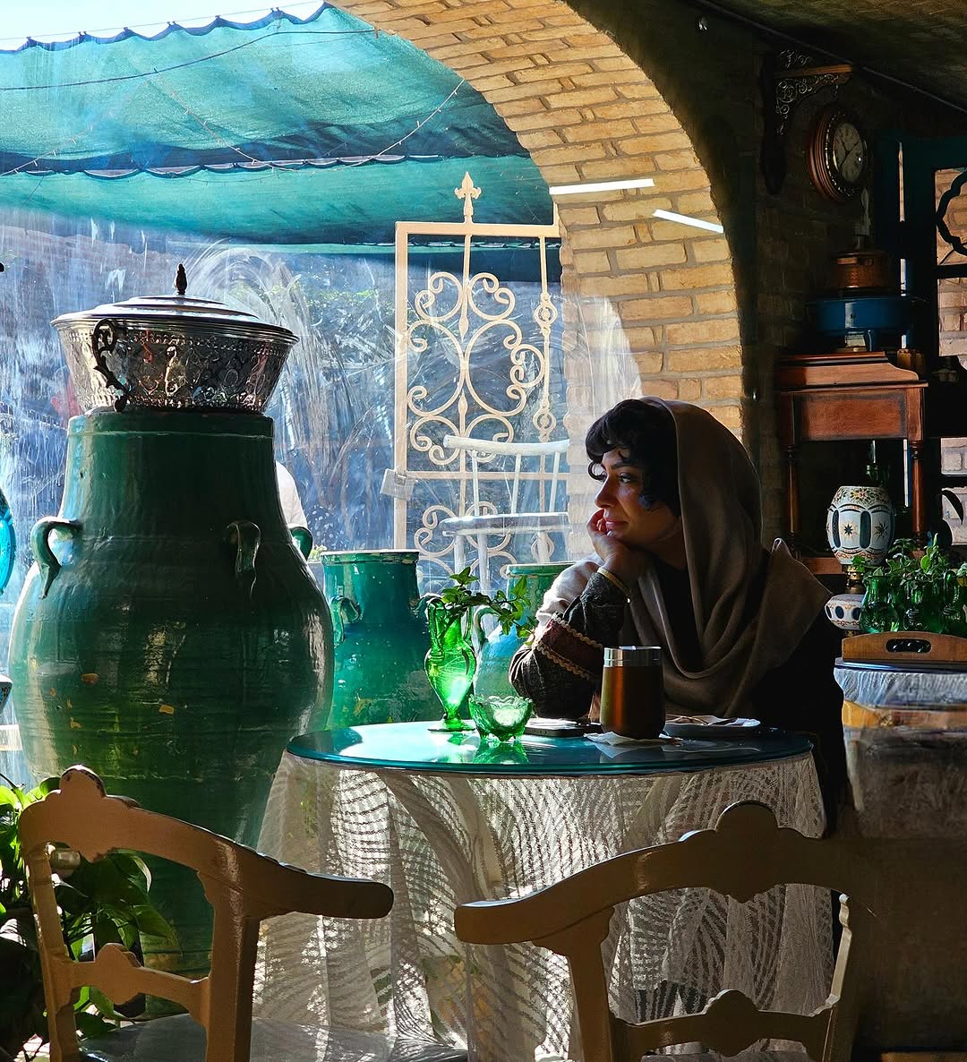 این عکس که صحنهای از سریال محبوب «بامداد خمار» است، فضایی دلنشین و سنتی را به تصویر میکشد. ترکیب گلدانهای سرامیکی، میز و ساعت چوبی، گیاهان سبز و نوری که آرام روی میز میتابد، حس زندگی و صمیمیت را در فضا پررنگتر کرده و جلوهای خاص به دکوراسیون اصیل داده است. هر جزئیات این تصویر، از انتخاب مبلمان تا نورپردازی، نشاندهنده ظرافت و زیبایی سبک سنتی ایرانی است و مخاطب را به دنیای آرام و دلنشین خانههای اصیل ایرانی میبرد.
