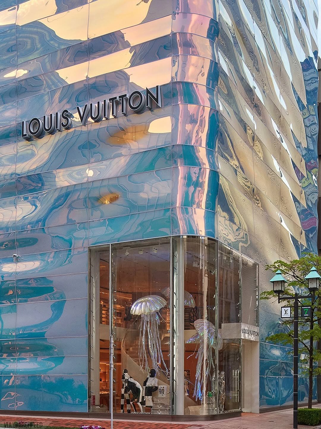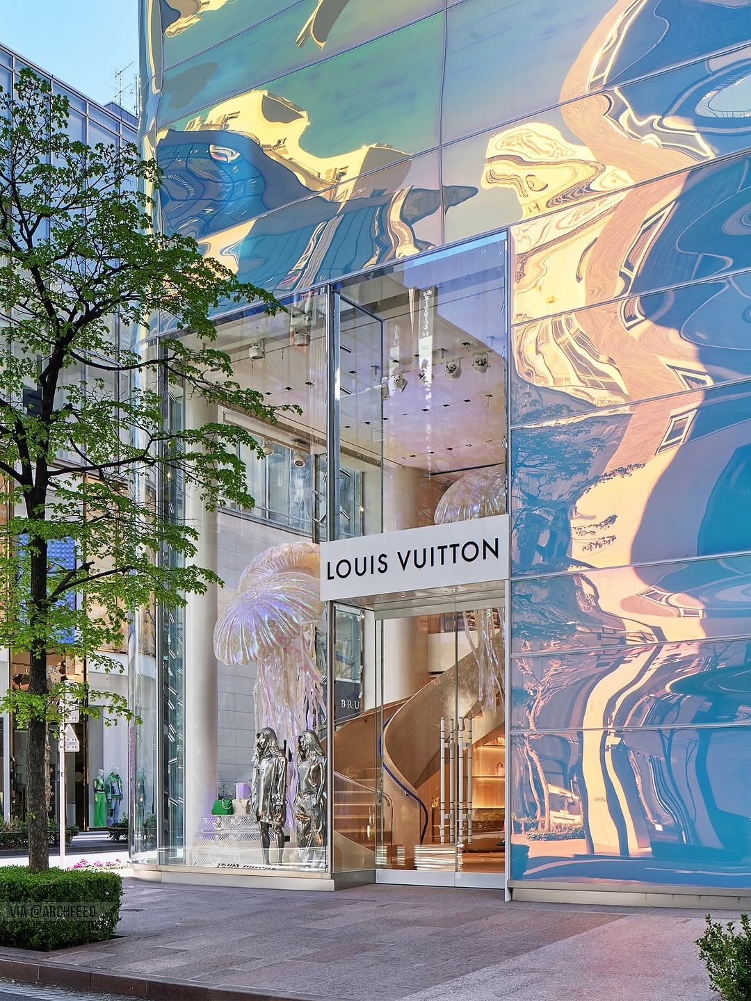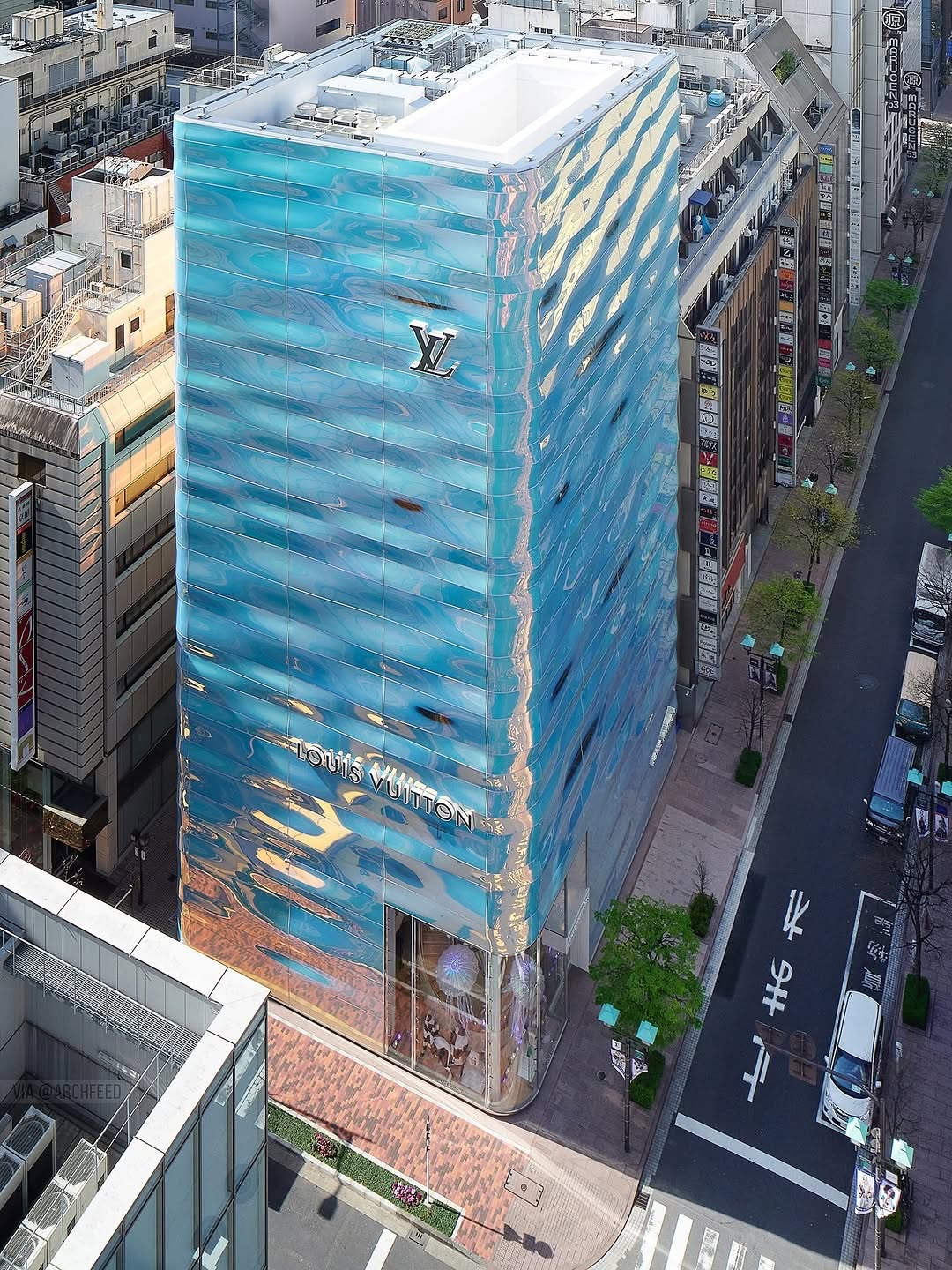 فروشگاه لویی ویتون در منطقه گینزا شهر توکیو یکی از ساختمان های متمایز در این منطقه محسوب می شود. ساخت فروشگاه پرچمدار لویی ویتون که در سال 2021 تکمیل شد بر عهده استودیو ژاپنی Jun Aoki & Associates بود. فضای داخلی این فروشگاه نیز توسط معمار پیتر مارینو طراحی شده است.