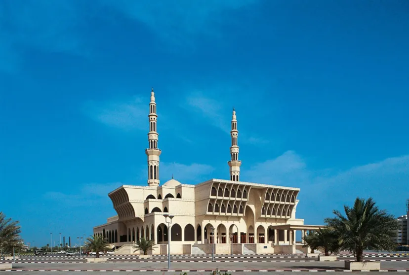 «مسجد ملک فیصل» (King Faisal Mosque) که در سال ۱۹۸۷ میلادی در شارجه امارات تکمیل شد، با فرمهای مینیمالیستی شناخته میشود. طراحی این مسجد عناصر سنتی معماری اسلامی را با ویژگیهای مدرن ترکیب کرده است. استفاده از اشکال هندسی و سطوح ساده و یکدست، از ویژگیهای اصلی این بنا به شمار میرود. نمای سفید و براق بنا با گنبد مرکزی بزرگ و دو گنبد کوچکتر در اطراف، ظاهری متوازن و متقارن ایجاد میکند. همچنین استفاده گسترده از شیشه، بهویژه در پنجرههای بزرگ قوسی، اجازه میدهد که نور طبیعی فضای شبستانها را روشن کند و محیطی آرام و معنوی به وجود آورد.