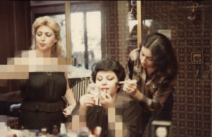 میز آرایش پر از لوازم زیبایی، عطرها و بطریهای قدیمیست؛ جزئیاتی که نشانهی یک سالن حرفهای و پررفتوآمد در آن دوران بودهاند. حضور دو ستارهی محبوب موسیقی، در کنار این دکور شیک و زنانه، تصویر را به یکی از همان لحظههای نوستالژیکی تبدیل کرده که حالوهوای زیبایی، رفاقت و سبک زندگی هنرمندان آن زمان را به تصویر میکشد.