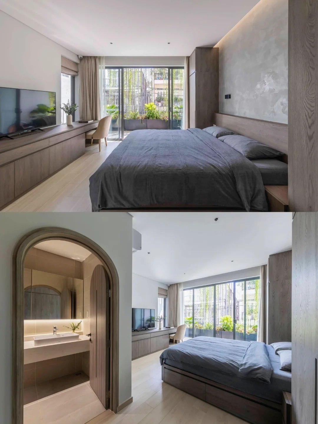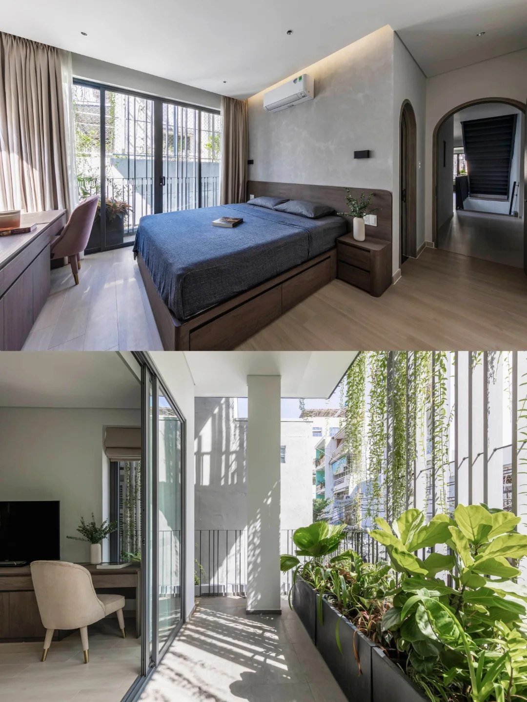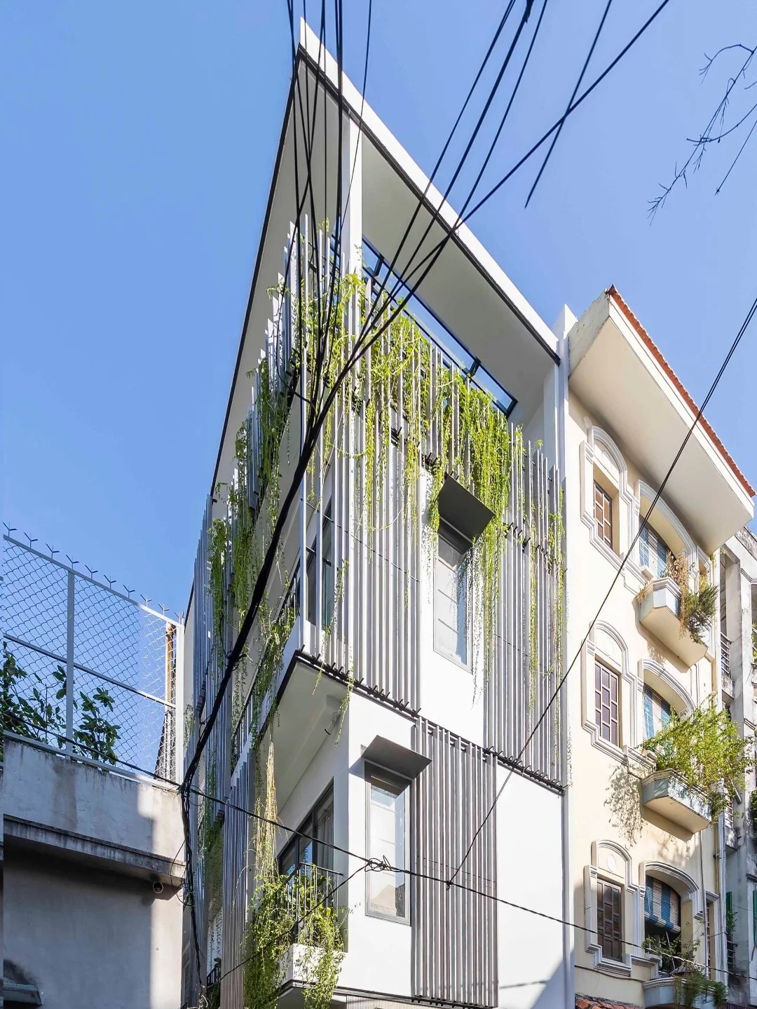 هسته اصلی این پروژه بر رفع مشکلات نورپردازی و تهویه ناکافی متمرکز شد. نمای بیرونی خانه با استفاده از لایههای آلومینیومی عمودی (با ظاهر چوب) که با پوشش گیاهی فراوان ترکیب شدهاند، چهرهای تازه به خود گرفت. این لایه جدید نه تنها جلوهای مدرن ایجاد میکند، بلکه به عنوان یک فیلتر مؤثر در برابر آفتاب و گرد و غبار عمل کرده و نور طبیعی مناسب، تهویه و حریم خصوصی را تضمین میکند.