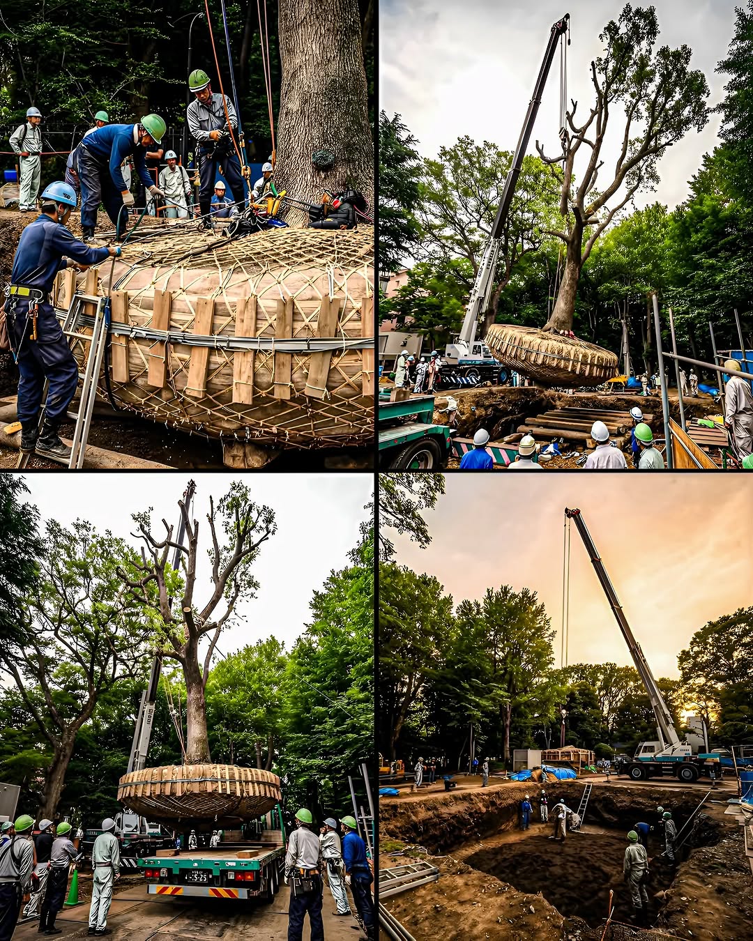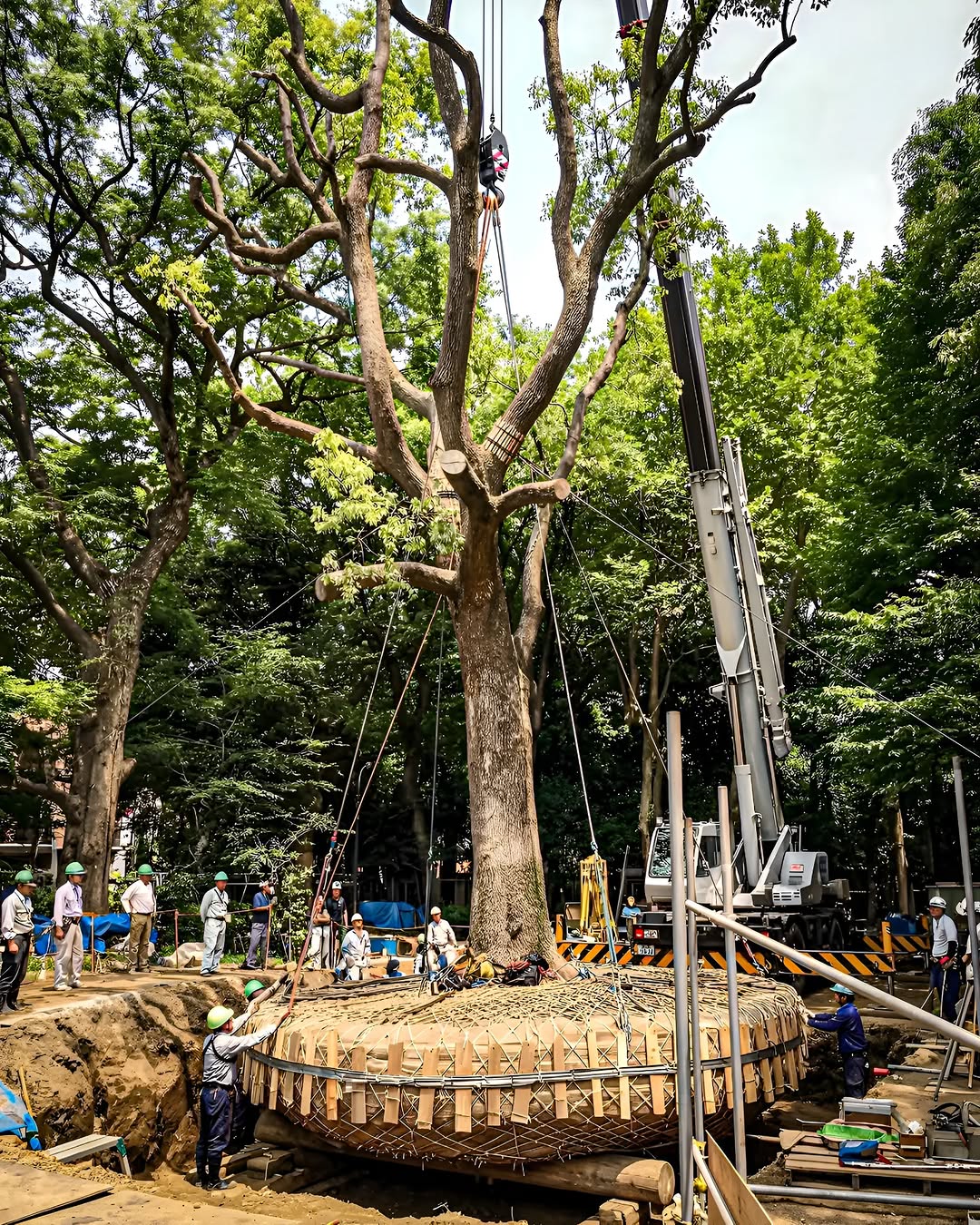 در پروژههای جادهسازی این کشور، وقتی مسیر به درختان کهنسال میرسد، به جای قطع آنها، تصمیم گرفته میشود درختان را با دقت و صبر جابهجا کنند. متخصصان ماهها قبل ریشههای درخت را هرس و محافظت میکنند، سپس با بستهبندی دقیق و جرثقیل، درخت را از زمین خارج و در نزدیکی همان محل دوباره میکارند. این آمادهسازی ممکن است حدود یک سال طول بکشد تا درخت بتواند ریشههای تازه بسازد و جابهجایی را تحمل کند.