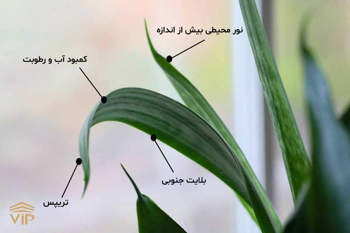 در مرحله بعدی با عوامل زیر به خوبی آشنایی پیدا کنید تا متوجه شوید ایراد از کجاست و آن را به سادگی برطرف کنید تا از لوله شدن برگ سانسوریا رهایی یابید و به برگ هایی کشیده، زیبا و سالم برسید.