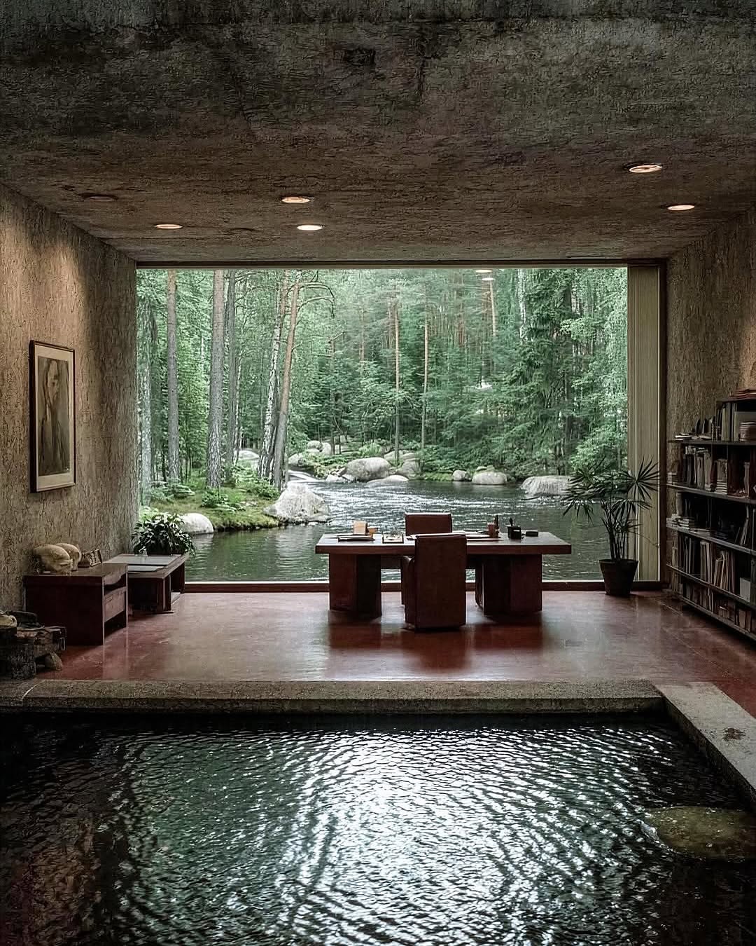 در دل طبیعت، جایی که آب و سبزی درختان در هم تنیدهاند، ویلایی ساخته شده که حالوهوایی ترسناک و مرموز دارد؛ انگار از دل یک داستان معمایی بیرون آمده باشد. طراحی مدرن با خطوط تیز، قابهای شیشهای تاریک و انعکاس ساختمان روی سطح آب، فضای این ویلا را به شکلی ناخودآگاه هولناک و خیرهکننده جلوه میدهد.