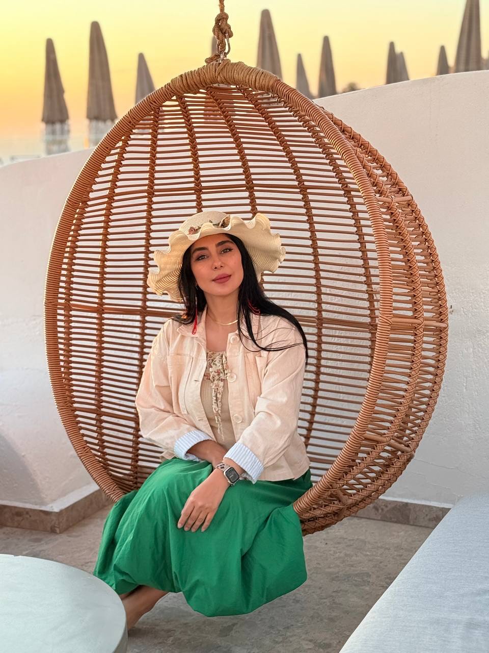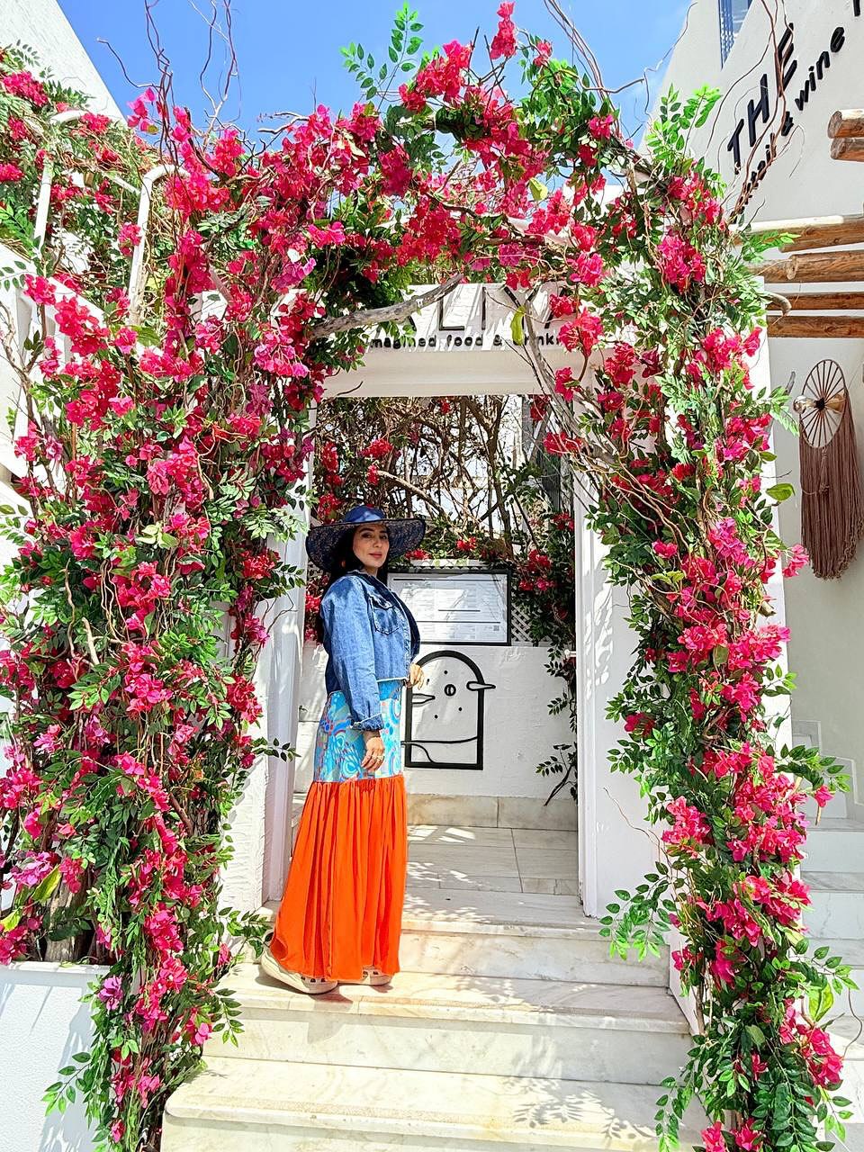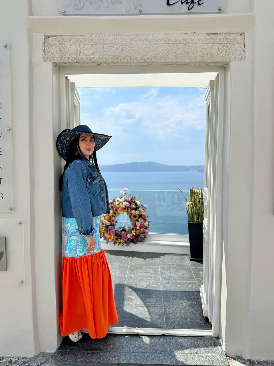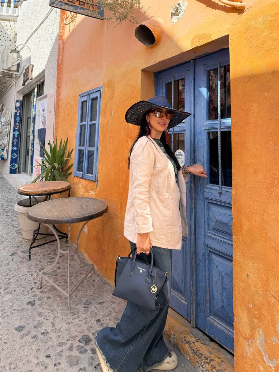 در کوچهای باریک و سنگفرششده، میان دیوارهای نارنجی و پنجرههای آبی، کافهای دنج پنهان شده است؛ در همین فضای شاعرانه، شیدا یوسفی روی صندلی تابی حصیری نشسته و ساعتی را به آرامش و لذت از لحظات گذرانده است.