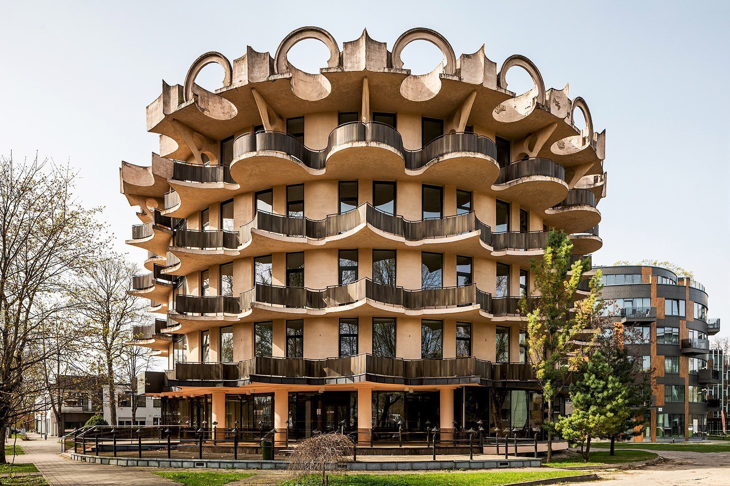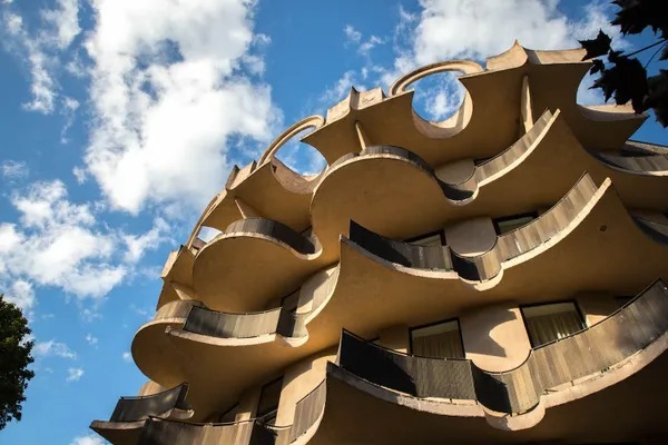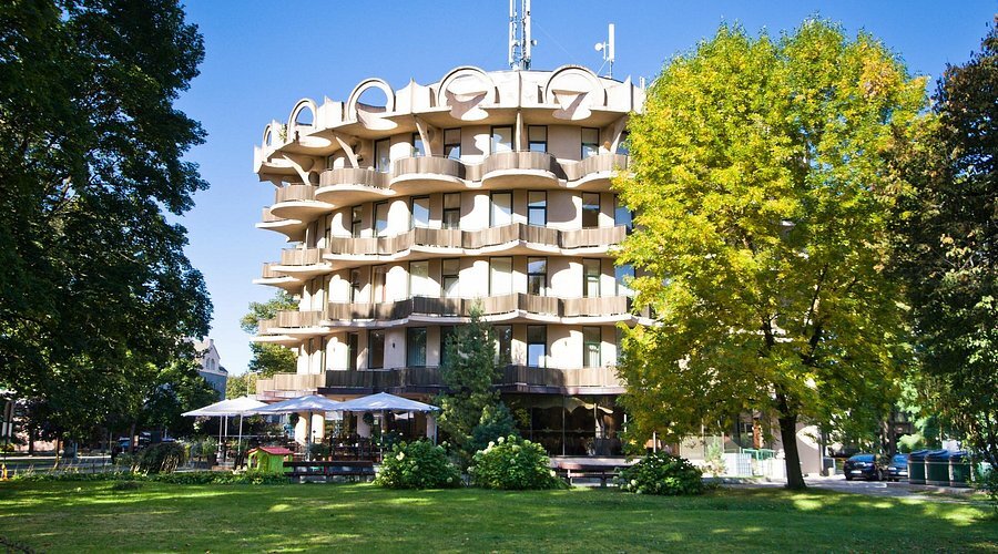 این مجموعه که در سبک معماری مدرنیسم شوروی با گرایشهایی از پستمدرنیسم طراحی شده، دارای یک نمای متمایز است که بازتابدهنده روندهای معماری اروپای شرقی در دهه ۱۹۸۰ است. ساختمان فعلی که به عنوان هتل مورد استفاده قرار میگیرد، همچنان یک اثر مهم معماری در منطقه بالتیک محسوب میشود. عکس این بنا در سال ۲۰۲۴ توسط استفانو پرگو ثبت شده است.