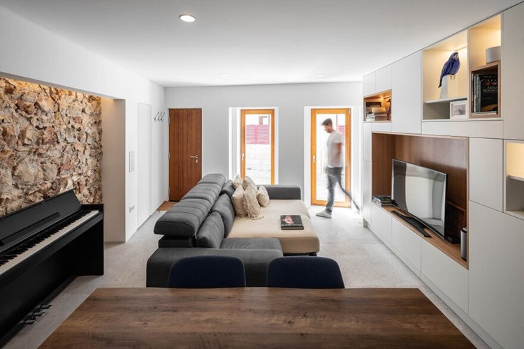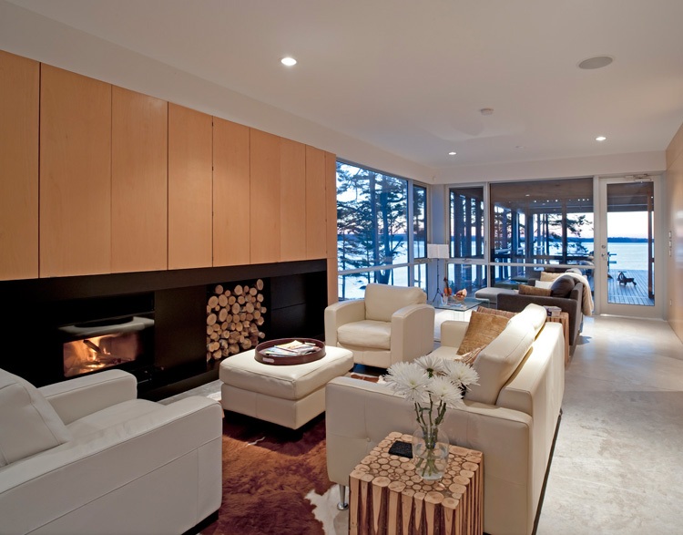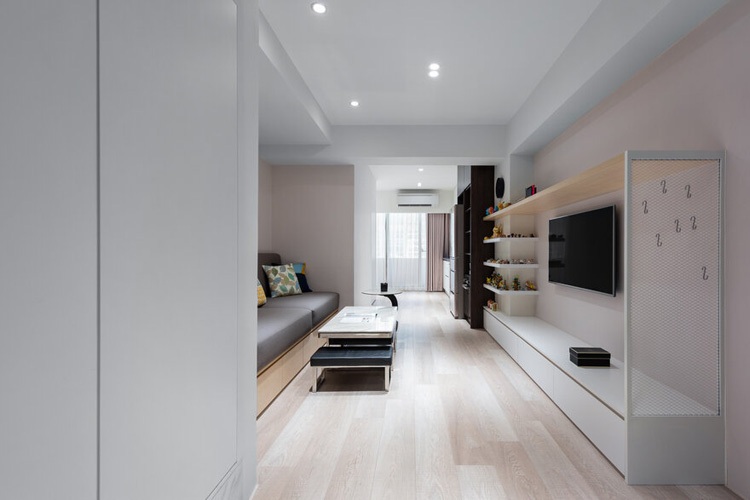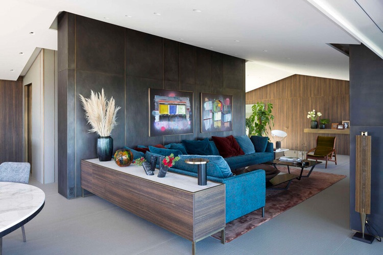 یک ایده خوب و جذاب در طراحی سالن نشیمن با این فرم، افزودن قفسه های کتاب، قفسه های توکار و حتی یک میز کار و مطالعه می باشد. این باعث می شود شما هدفمند فضا را چیدمان کرده باشید، تا اینکه صرفا فضا را پر کرده باشید. همچنین می توانید از سایر عناصر تزئینی مناسب برای چیدمان این فرم فضاها استفاده کنید.