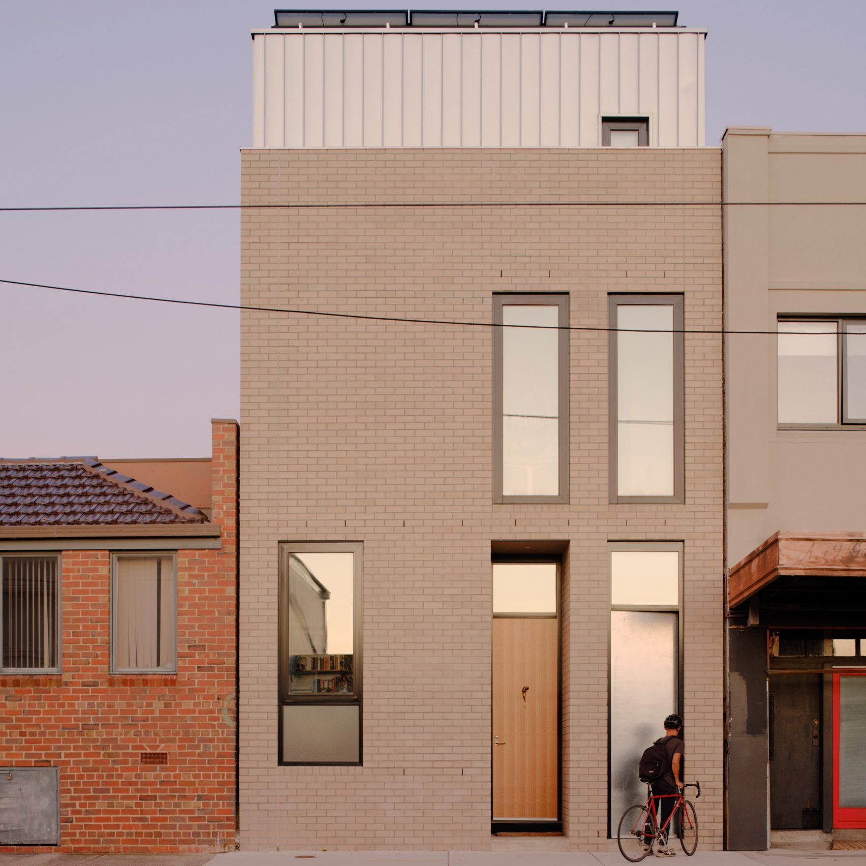 آجرهای روشن، فرم مستطیلی این خانه جمعوجور در ملبورن را میپوشانند. این خانه توسط معمار استرالیایی، جُس تَن، طراحی شده تا با ساختمانهای همسایه همخوانی داشته باشد. در نمای روبهخیابان، بازشوهای بلند و باریک اضافه شده و پشت خانه، درب شیشهای کشویی، آشپزخانه و ناحیه غذاخوری را به حیاط متصل میکند.