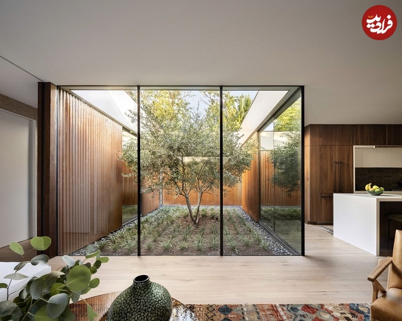این واحد مسکونی جانبی در آستن هیچ پنجره خارجی ندارد. در عوض، فضا حول دو حیاط داخلی طراحی شده که نور و حس وسعت را به محیط زندگی میآورند. اِسپِکت نُوَک، معمار و مالک خانه میگوید: «حذف پنجرههای پیرامونی اقدامی آگاهانه بود تا نحوه تعامل خانه با محیط پیرامون بازتعریف شود.»