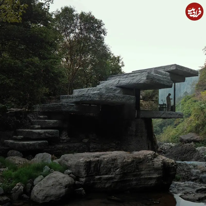استودیو چینی DoDesign این نقطهدید تمام شیشهای را روی صخرهای در چونگکینگ قرار داده و طراحی آن را از یک تختهسنگ بزرگ با سطح بالایی صاف الهام گرفته است. منطقه اصلی بازدیدکنندگان زیر مجموعهای از صفحات سیمانی پلکانی پنهان شده که شبیه سنگهای طبیعی ساخته شدهاند تا بازدیدکنندگان در این منظره دراماتیک غوطهور شوند. عناصر سقف سنگمانند با پوشاندن قابهای فولادی با سیمان مخلوطشده با پودر سنگ محلی ساخته شده و سپس توسط صنعتگران محلی با دست حجاری شده تا شبیه بافتهای صخرههای اطراف شود.