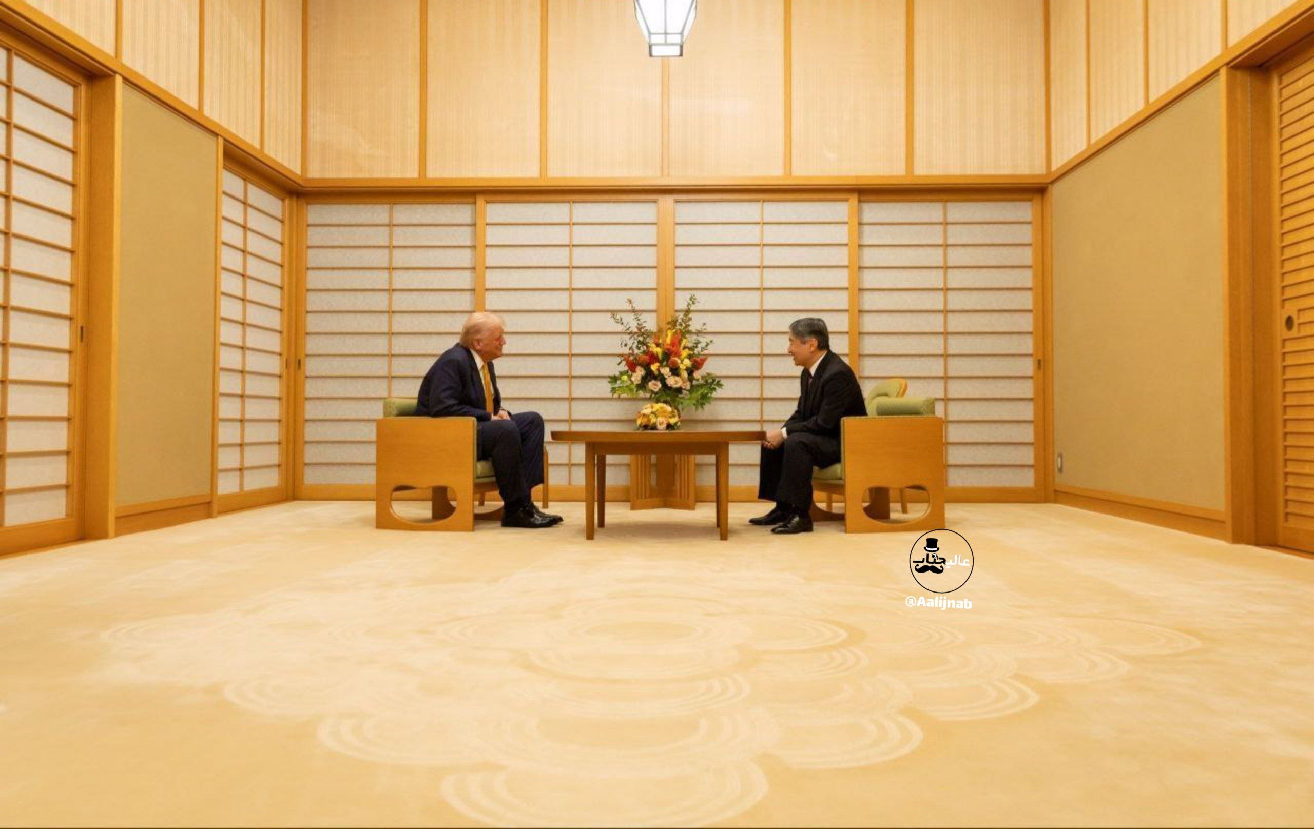 در این دیدار، امپراتور ژاپن میزبان رئیسجمهور آمریکا در اتاقی با طراحی الهامگرفته از معماری سنتی ژاپنی است؛ فضایی مینیمال و آرام.