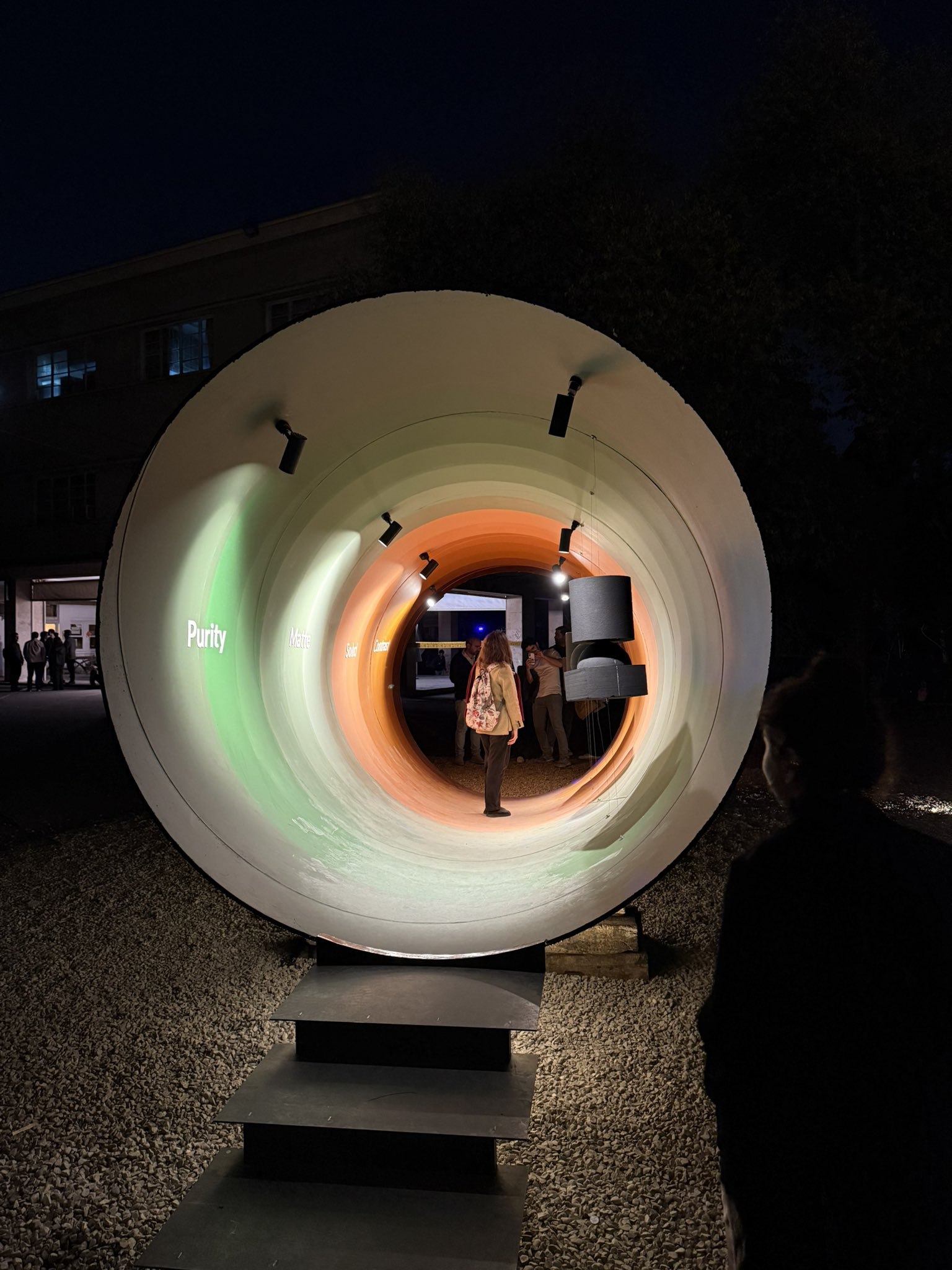 در این فضا، ترکیب خلاقانهی نور و متریال، جلوهای خاص به دیوارها و حجمها داده بود؛ صندلیها و سازههای مفهومی، میان نورهای نرم و رنگهای خنثی جان گرفته بودند و حس غریبی از سکوت و الهام را در فضای دانشگاه ایجاد میکردند.