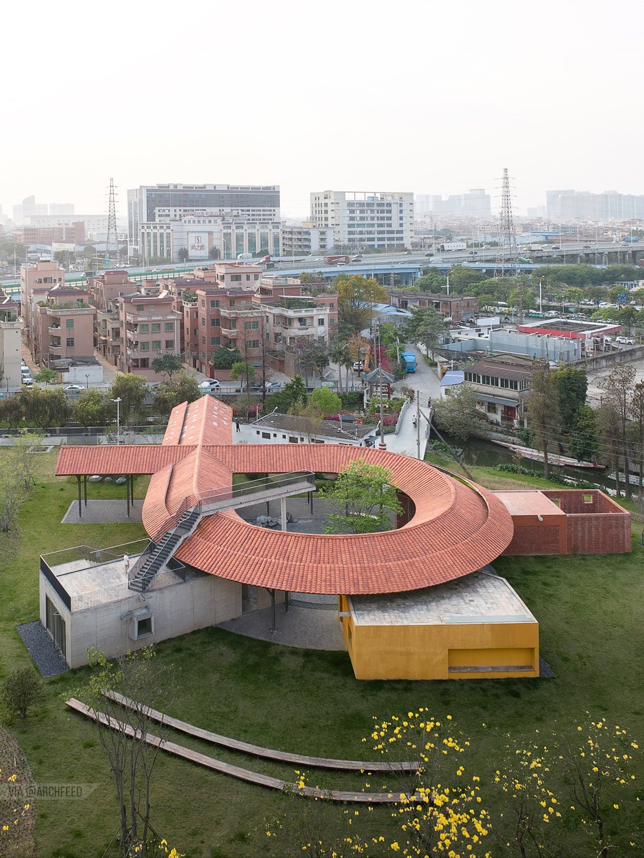 معماران با طراحی یک راهرو، مسیری را خلق کردهاند که بازدیدکنندگان را به سمت «آشیانه اژدها» —محل استراحت قایق باستانی— هدایت میکند. این پروژه در سال ۲۰۲۵ با هدف بازآفرینی سرزندگی جامعه محلی و انطباق نرم با شرایط اقلیمی ساخته شده و با استفاده از متریالهای متنوع، هویت بصری جدیدی به بافت تاریخی فوشان بخشیده است.